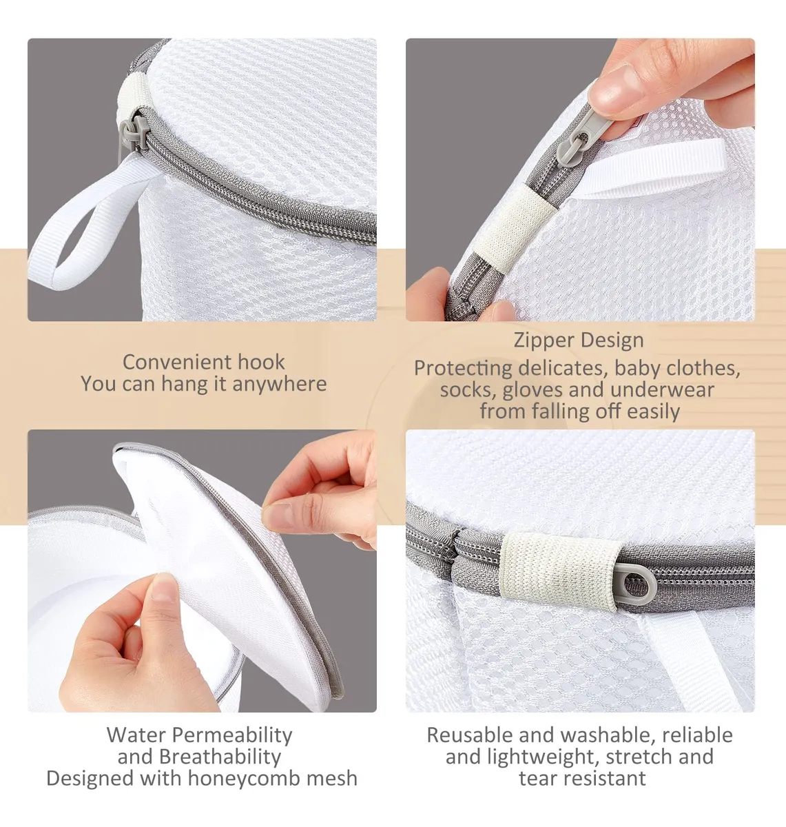 Descripción del Producto: 1. Diseño portátil: fácil de transportar y se puede colgar directamente en la percha para que se seque 2. Malla fina de doble capa gruesa: protección fuerte, buena permeabilidad al agua, más duradera 3. Cremallera de plástico: suave para tirar, no se rompe cuando se agita y se lava, evita que la ropa se manche debido al óxido 4. Esqueleto 3D integrado: lavable a máquina, antideformación y antibobinado, protege mejor tu sujetador El objetivo principal: Protege tu ropa interior en la lavadora. Con asa, fácil de llevar. Cierre con cremallera para facilitar la apertura y el cierre. – Diferentes tamaños Dos tamaños de bolsas de lavandería de malla fina, puede elegir el tamaño de ropa interior adecuado para poner en la bolsa de lavandería que se ajuste a ellos. Funcionan impecablemente cada vez, manteniéndolos como nuevos. – Bolsa de lavandería resistente y reutilizable. Bolsa de lavandería de malla duradera y transpirable hecha de espuma viscoelástica y fibra de poliéster 100%, sana y limpia. Permite que el agua y el detergente pasen fácilmente para obtener los mejores resultados de limpieza. – Protección extra para tu ropa Clasifique la ropa con mayor libertad al lavar la ropa. La bolsa de lavandería de malla fina ultrasuave permite que el agua y el detergente pasen sin engancharse. Reduzca el desgaste y la deformación de la ropa durante el lavado y prolongue la vida útil de la ropa.
