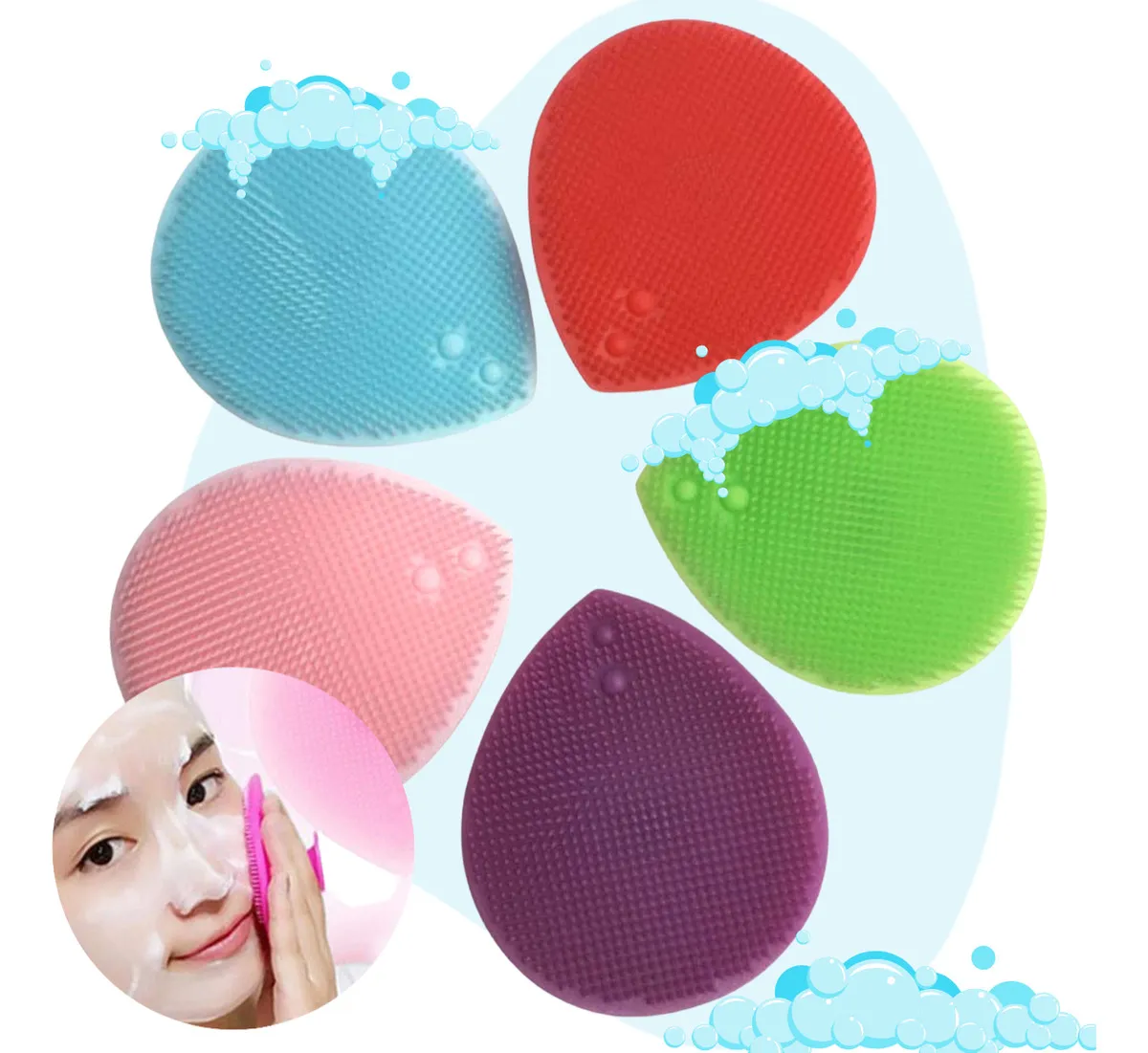 Set 4 PIEZAS Cepillo Facial de Silicón Exfoliante Limpiador Este cepillo facial está diseñado para eliminar la suciedad, los restos de maquillaje y el exceso de grasa de la piel de manera cotidiana. También ayuda a preparar la piel para prevenir arrugas y líneas de expresión. Fabricado en silicón, material que resulta más higiénico que los cepillos de fibra y favorece la absorción de protectores solares para evitar daños por exposición al sol. Los cepillos faciales son compatibles con una variedad de productos limpiadores, incluyendo jabones, aceites y geles. Modo de uso: Humedecer el rostro con agua. Aplicar el gel, jabón o limpiador facial en el rostro y distribuirlo con el cepillo realizando movimientos circulares. Comenzar por las mejillas, continuar por la nariz, la barbilla y finalizar en la frente, dedicando tiempo a cada área para una limpieza profunda. Enjuagar la cara con agua y secar con una toalla suave. Tras la limpieza, aplicar crema hidratante. Este proceso se puede realizar por la mañana y por la noche. Colores disponibles: Rojo, Celeste, Rosa Claro, Verde y Morado. Medidas: 8 cm de Altura X 7 cm de Ancho.